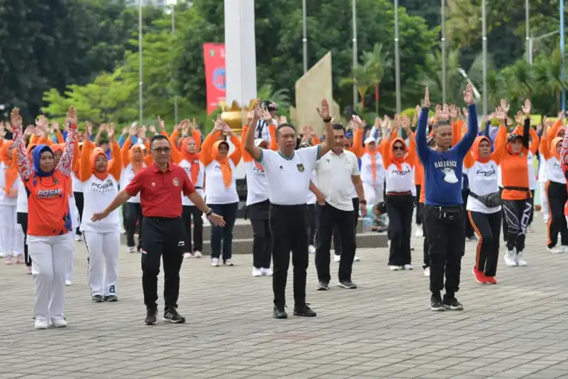 JAKARTA, BKP – BMenteri Pemuda dan Olahraga Republik Indonesia (Menpora RI) Zainudin Amali, terlihat sangat antusias mengikuti Senam Hari Krida untuk ajak masyarakat sehat dan bugar di Halaman Kantor Kementerian Pemuda dan Olahraga Republik Indonesia (Kemenpora RI) Senayan, Jakarta, Jumat (13/1) pagi.