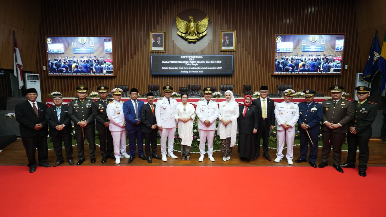 DPRD Kota Bandung menggelar Rapat Paripurna terkait Penyampaian Pidato Sambutan Wali Kota Bandung Masa Jabatan 2025-2030, di Ruang Rapat Paripurna DPRD Kota Bandung, Kamis, 20 Februari 2025.