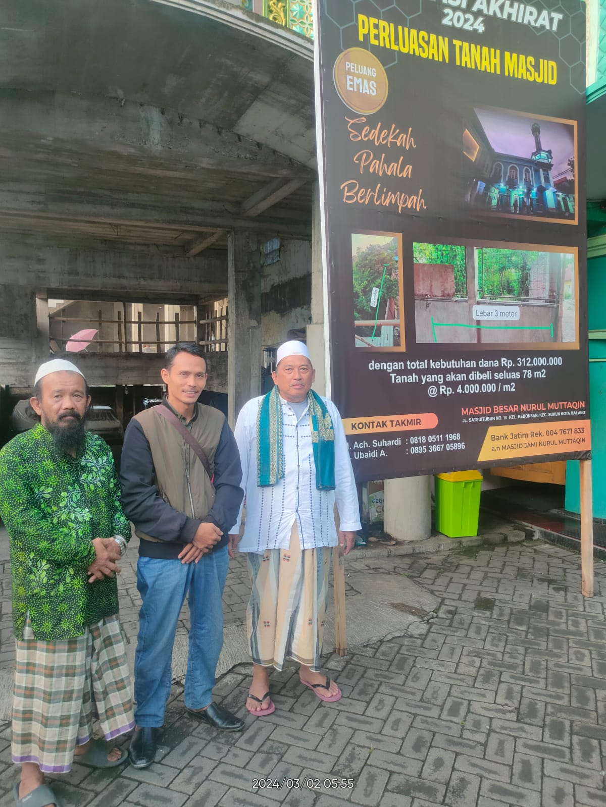 “Maka untuk melatar belakangi Perluasan Pembangunan Masjid besar NURUL MUTTAQIN, kami berharap kepada pemerintah kota malang dan semua pihak khususnya para donatur, untuk peduli membantu dengan penuh keikhlasan memberikan sumbangan pemikiran dan dukungan material serta dana agar masjid yang kami kembangkan ini lebih bermakna dan dapat dirasakan manfaatnya oleh masyarakat khususnya umat Islam disekitarnya, serta jadi amal jariah untuk bekal kita di kehidupan akhirat kelak” harap Abah Ubaidi. (OKS)***