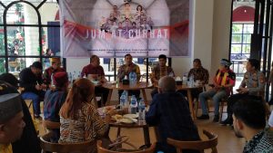 “ Dalam kegiatan ini kami menghadirkan beberapa PJU Polres Kubu Raya, dan Kapolsek Sungai Raya AKP Hasioland Saragih dimana selaku Kapolsek Sungai Raya yang baru. Dalam kegiatan ini kita dapat berdiskusi terkait situasi permasalahan di Kab. Kubu Raya, maka dengan ini saya membawa Pejabat Utama Polres Kubu Raya dengan bagiannya masing masing, tutur Jerrold mengenalkan masing masing pejabat utamanya.