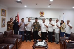 Jakarta – Plt Menteri Pemuda dan Olahraga Republik Indonesia (Menpora RI), Muhadjir Effendy hari Selasa (21/3) sore bersilaturahmi dengan Ketua Umum KONI Pusat, Marciano Norman dan pengurus lainnya di Lantai 12 Gedung Piramid, KONI, Jakarta Pusat.